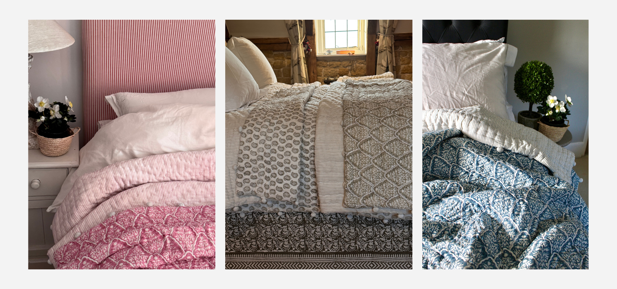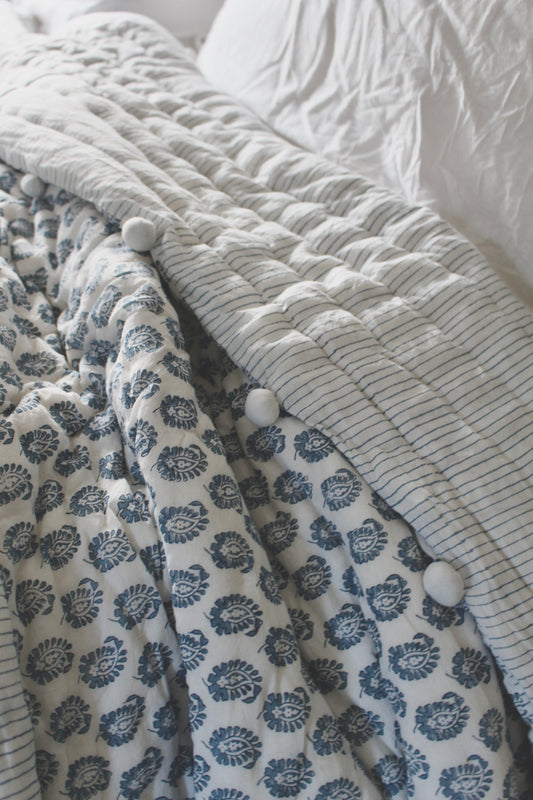 Two years in the making, our KaHo Quilts bring together thoughtful British design and exceptional Jaipur craftsmanship. Each quilt is hand-printed, hand-stitched, and created in small batches exclusively for KaHo Prints.