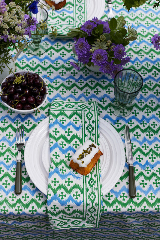 BLUE AND GREEN ZIG ZAG TABLECLOTH