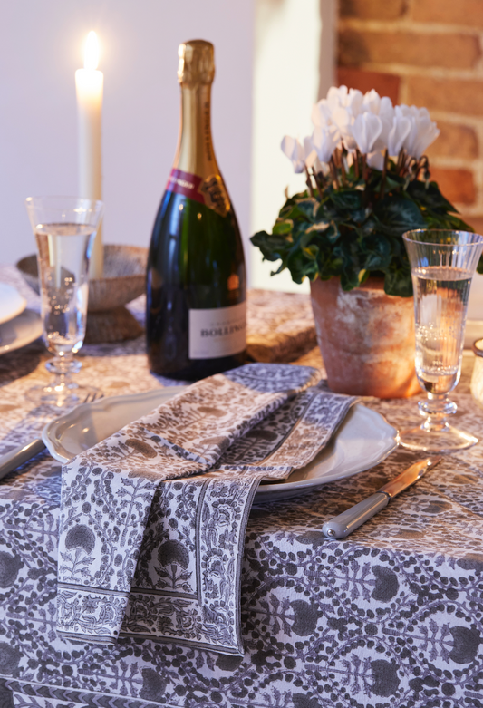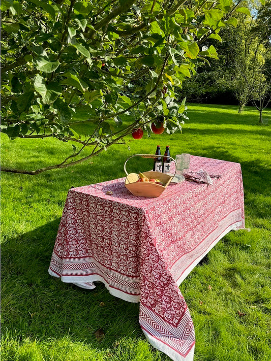 Brighten up your tabletop with one of our block printed table cloths. Created with vibrant colours, heavy organic Indian cotton and unique block prints. The quickest and easiest way to add a pop of colour!