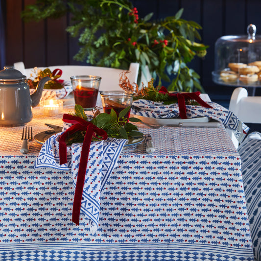 SCANDINAVIAN BLUE CHRISTMAS TREE TABLECLOTH
