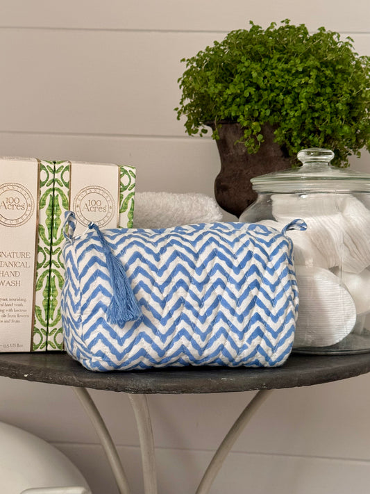 BLUE ZIG ZAG TINY MAKEUP BAG