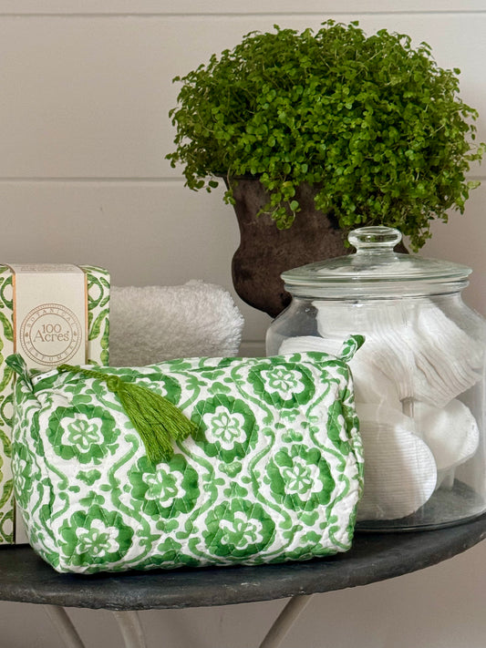 GREEN SPIRAL FLORAL TINY MAKEUP BAG
