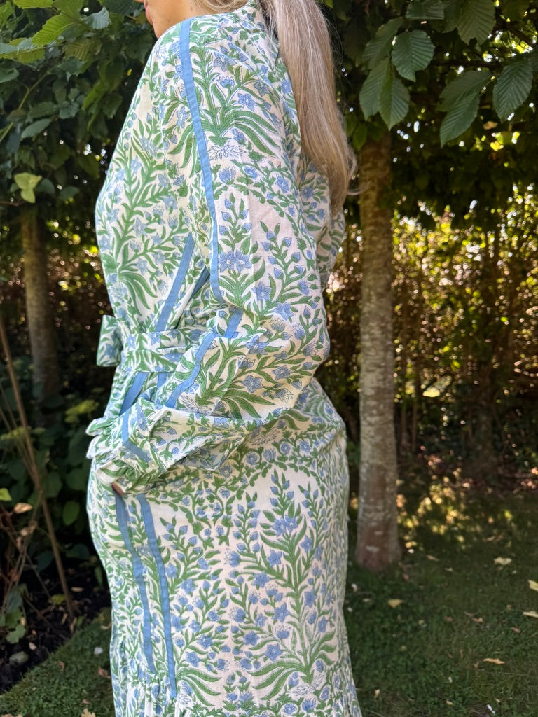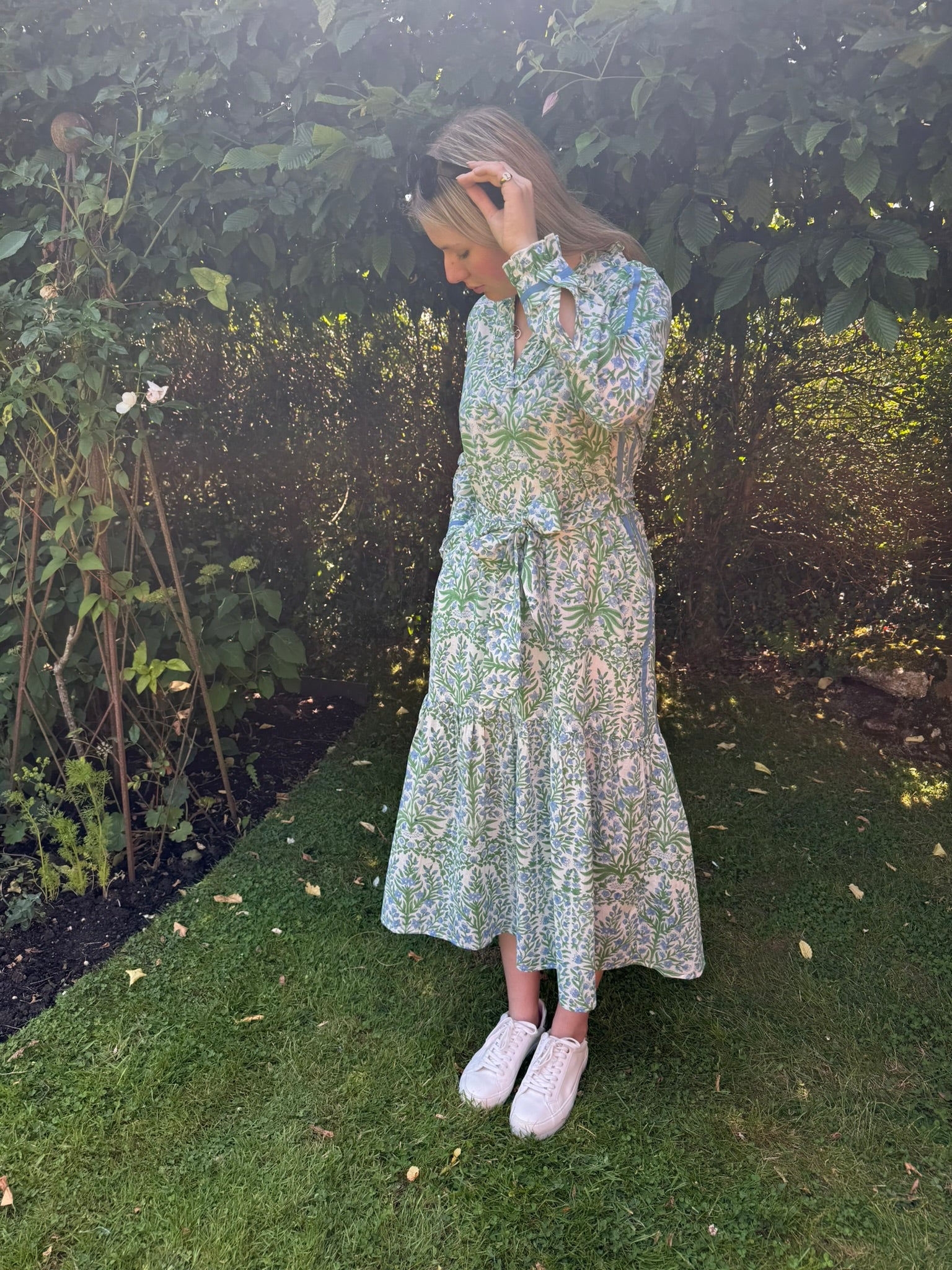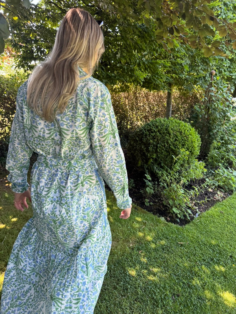 BLUE AND GREEN BUTAH FLORENCE DRESS