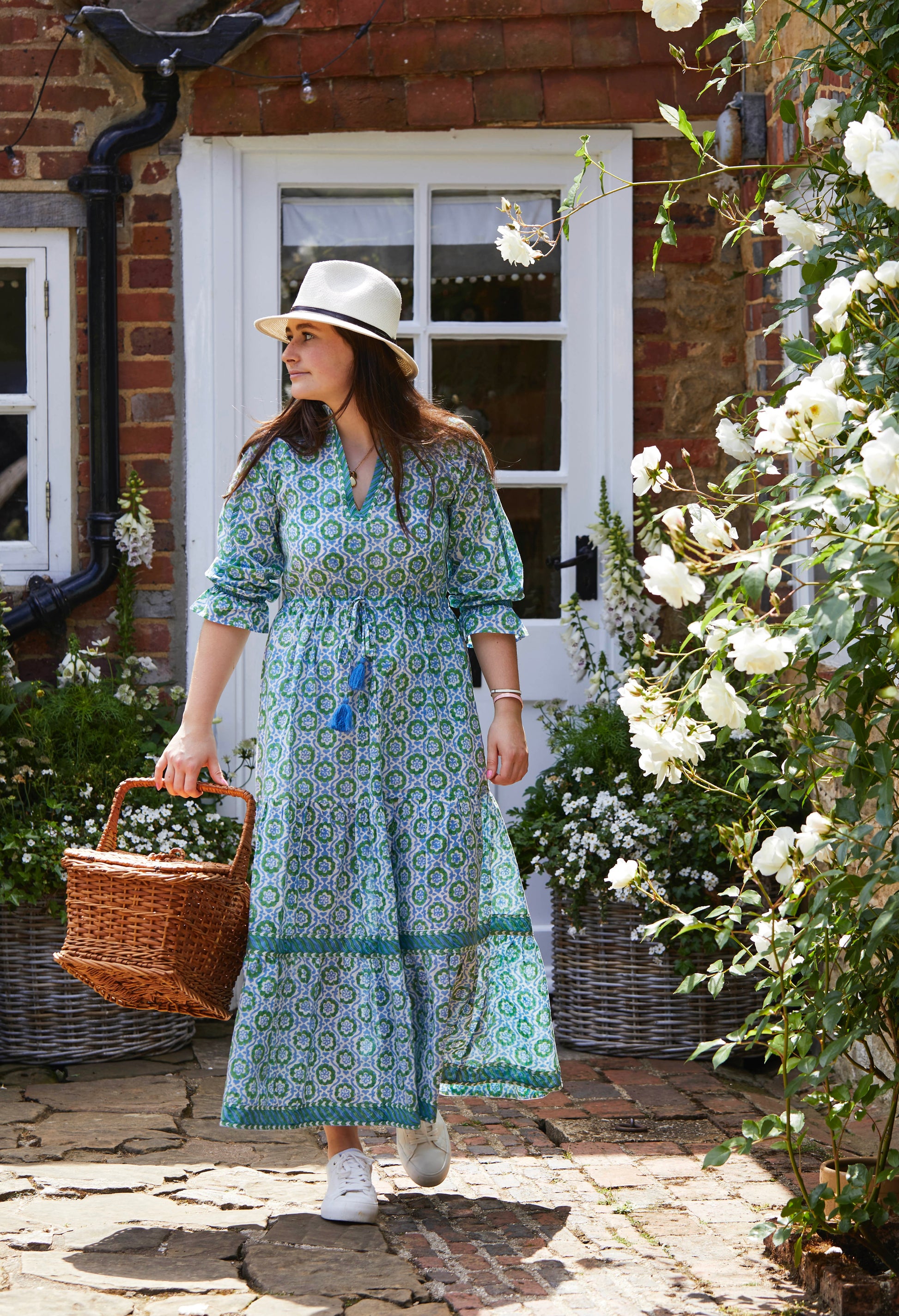 BLUE AND GREEN SPIRAL FLORAL LOTTIE DRESS