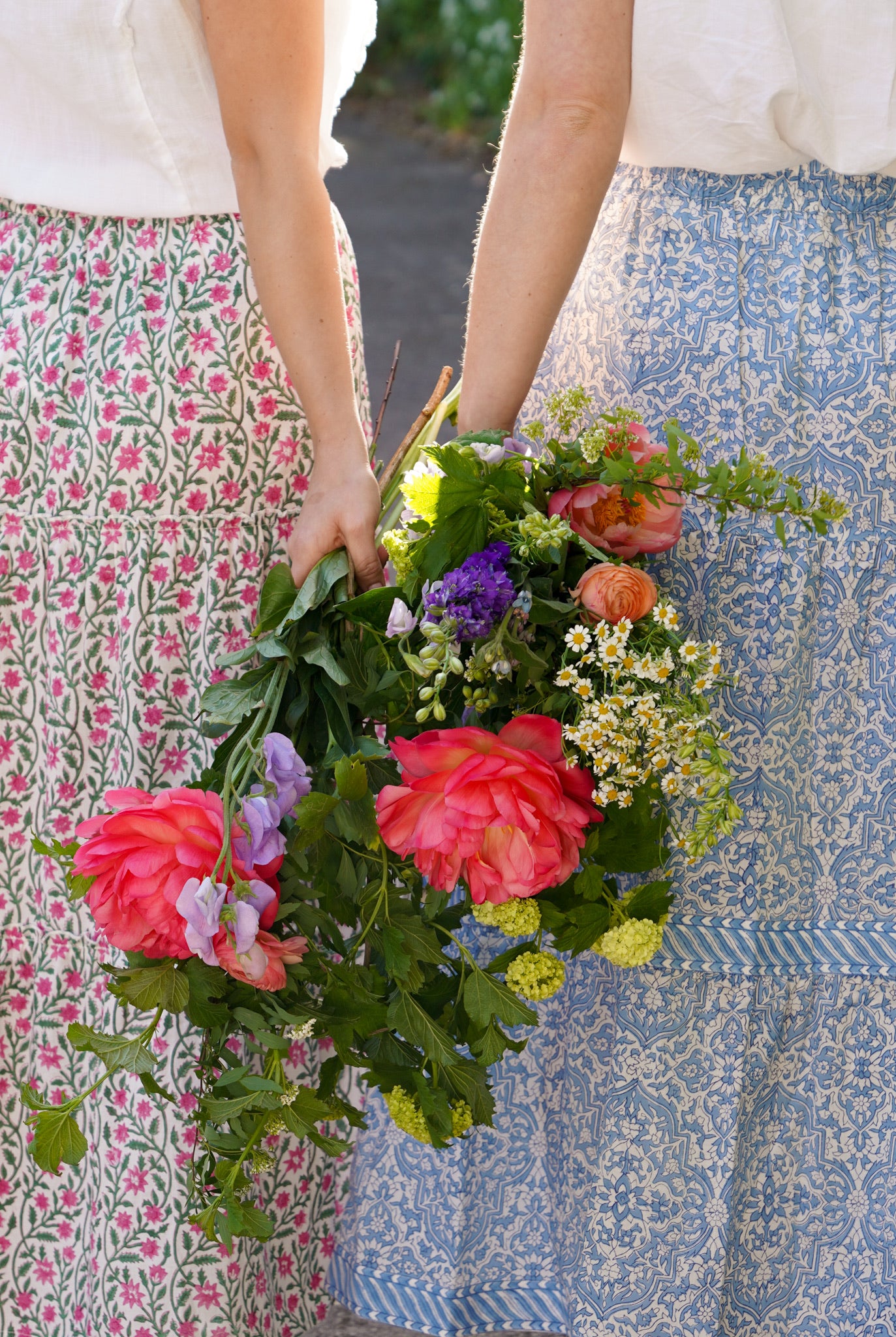 - Easy to wear tiered maxi skirt. Hand block printed.