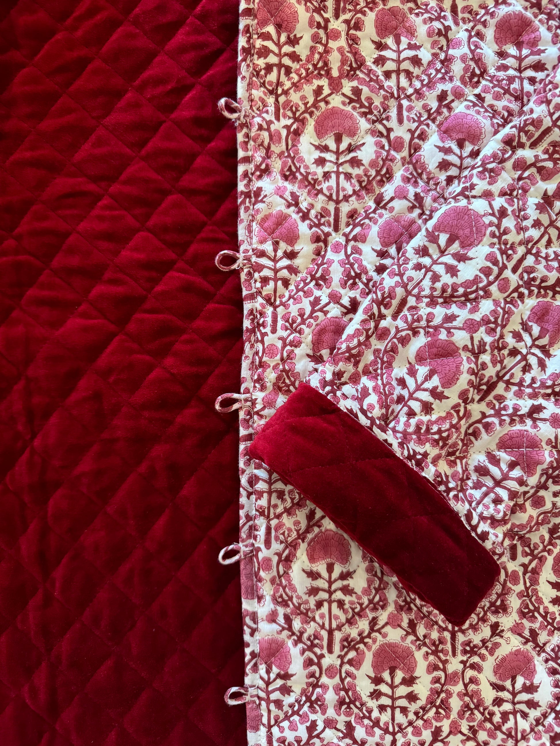 - On the other side a plush, cotton velvet - rich, non-shiny and made for the seasons cooler temperatures offering warmth and elegance.