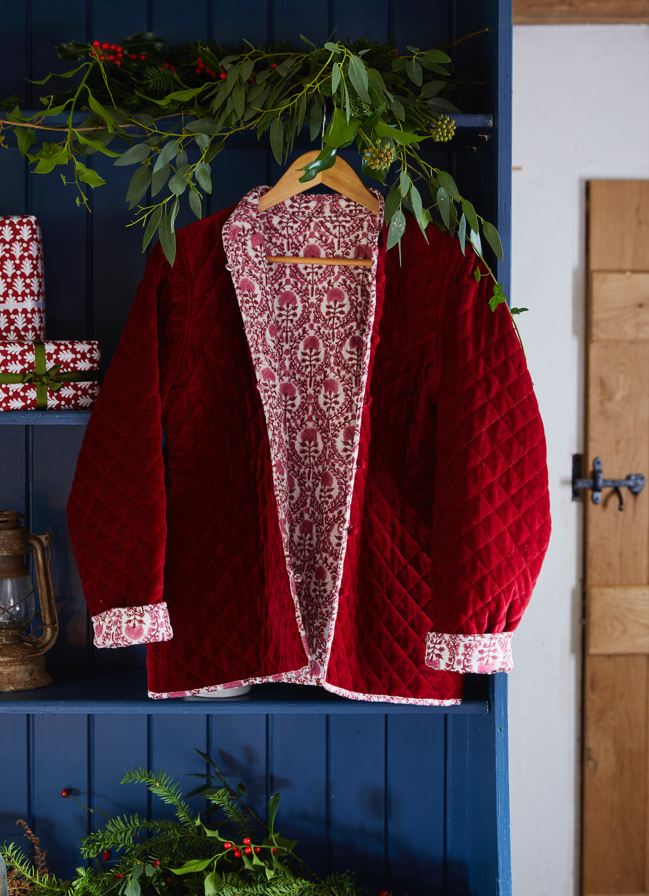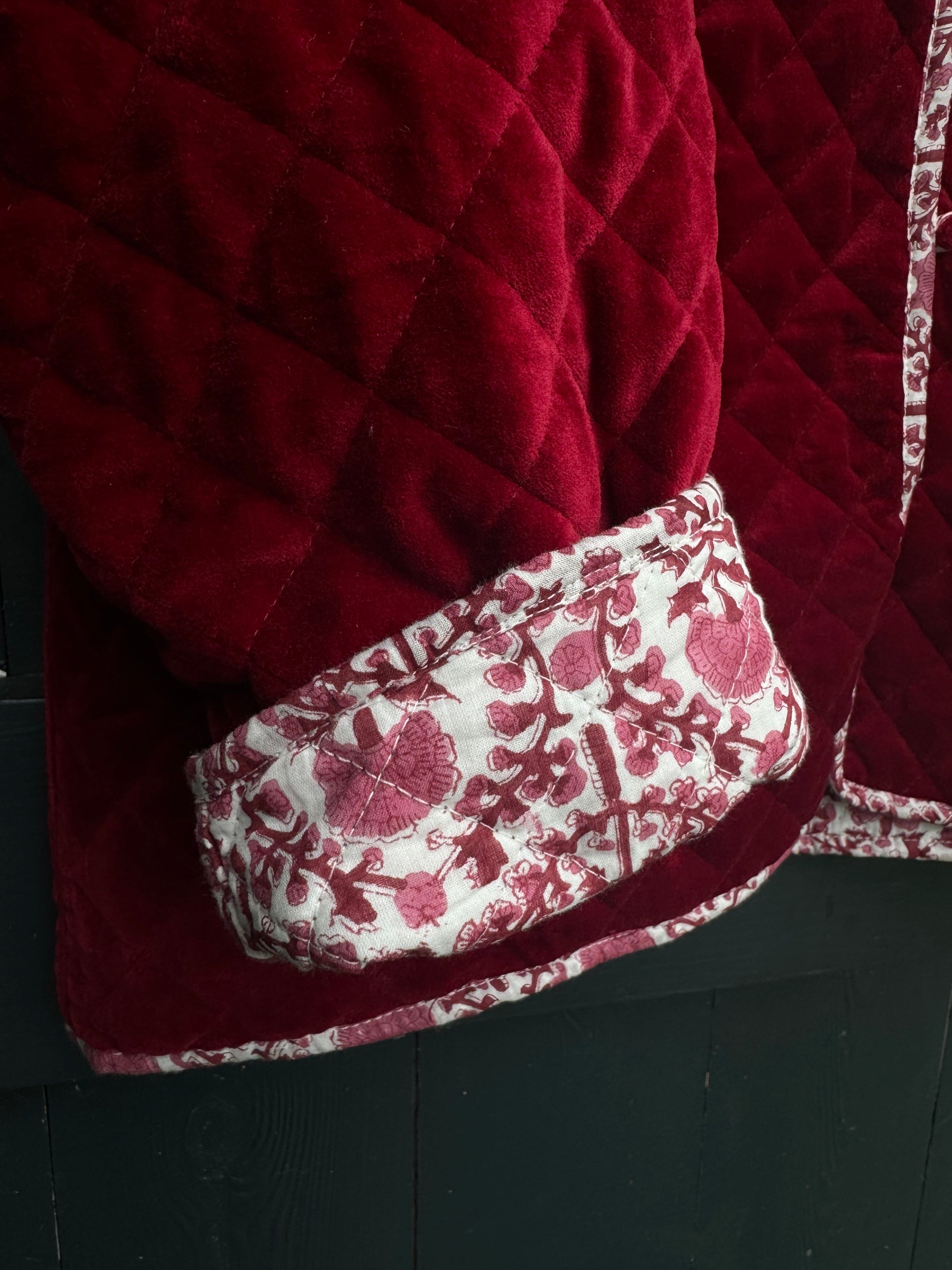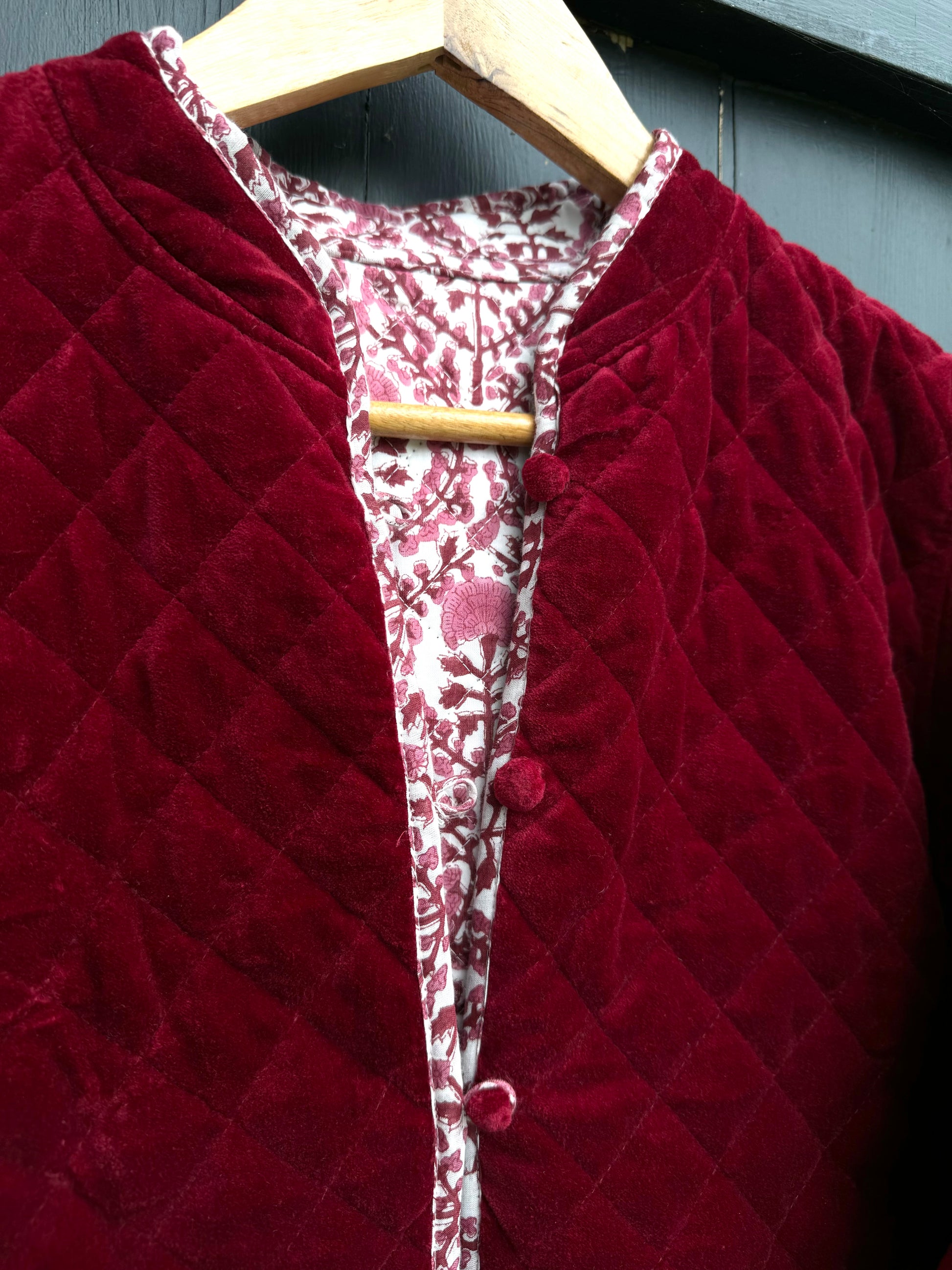The same cut and style as our much loved cotton quilted jackets but for this season combine a classic KaHo print with a contrasting elegant and luscious velvet!