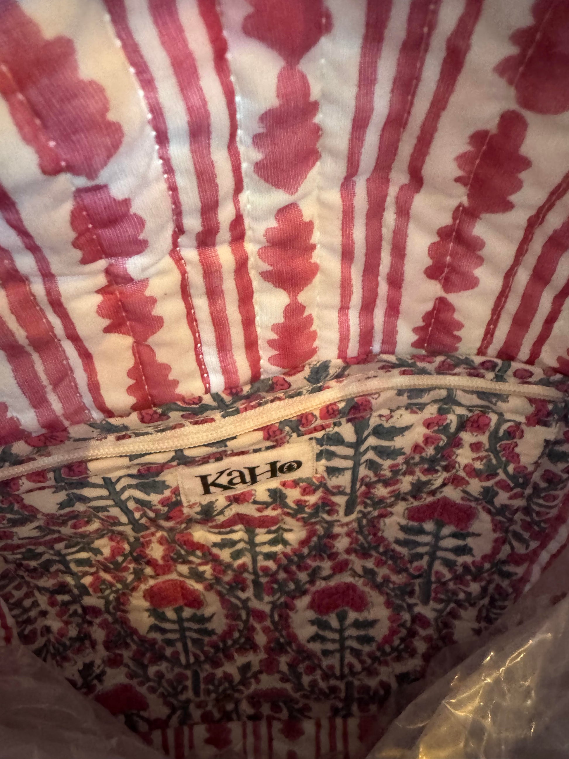 Fully lined with contrasting fabric.