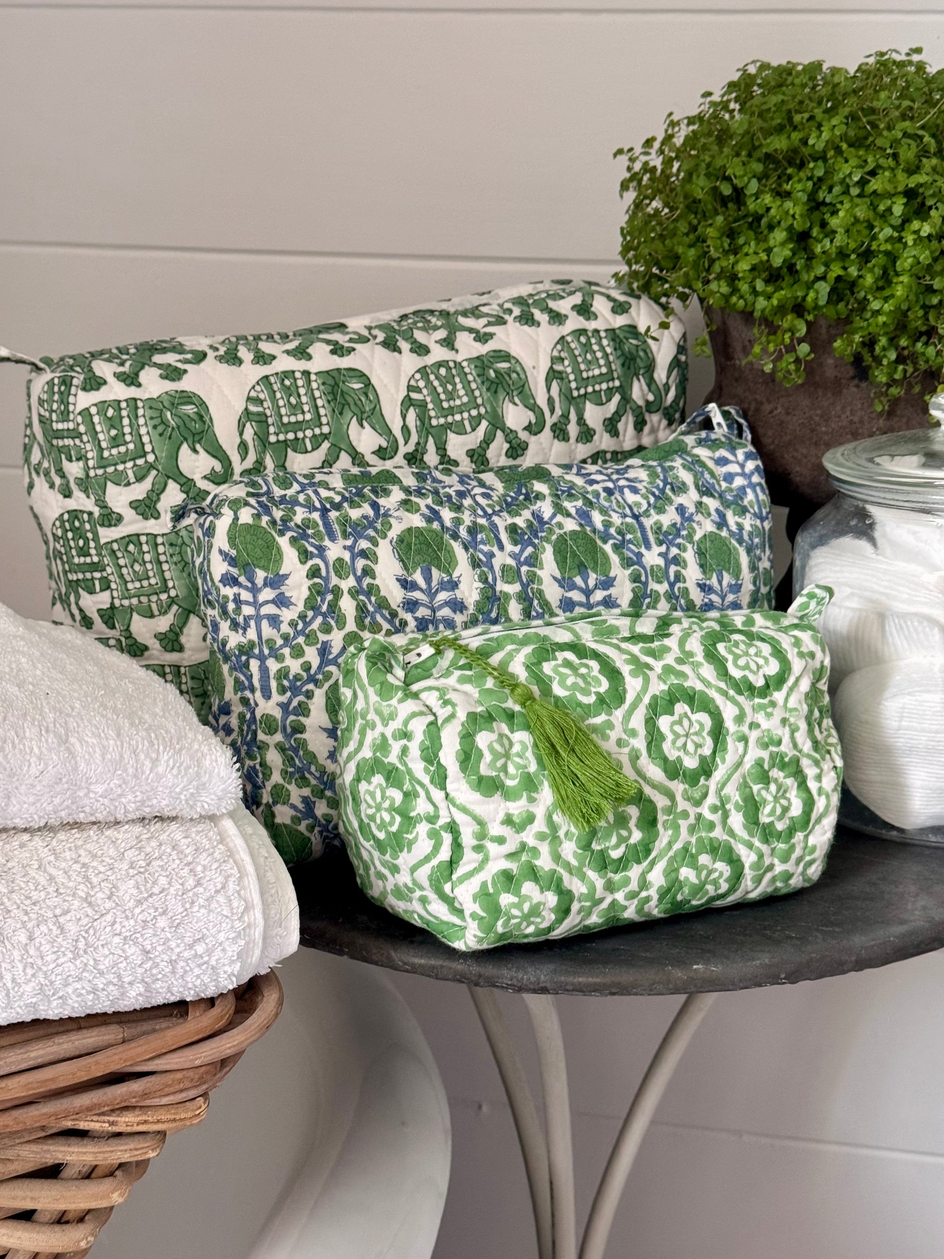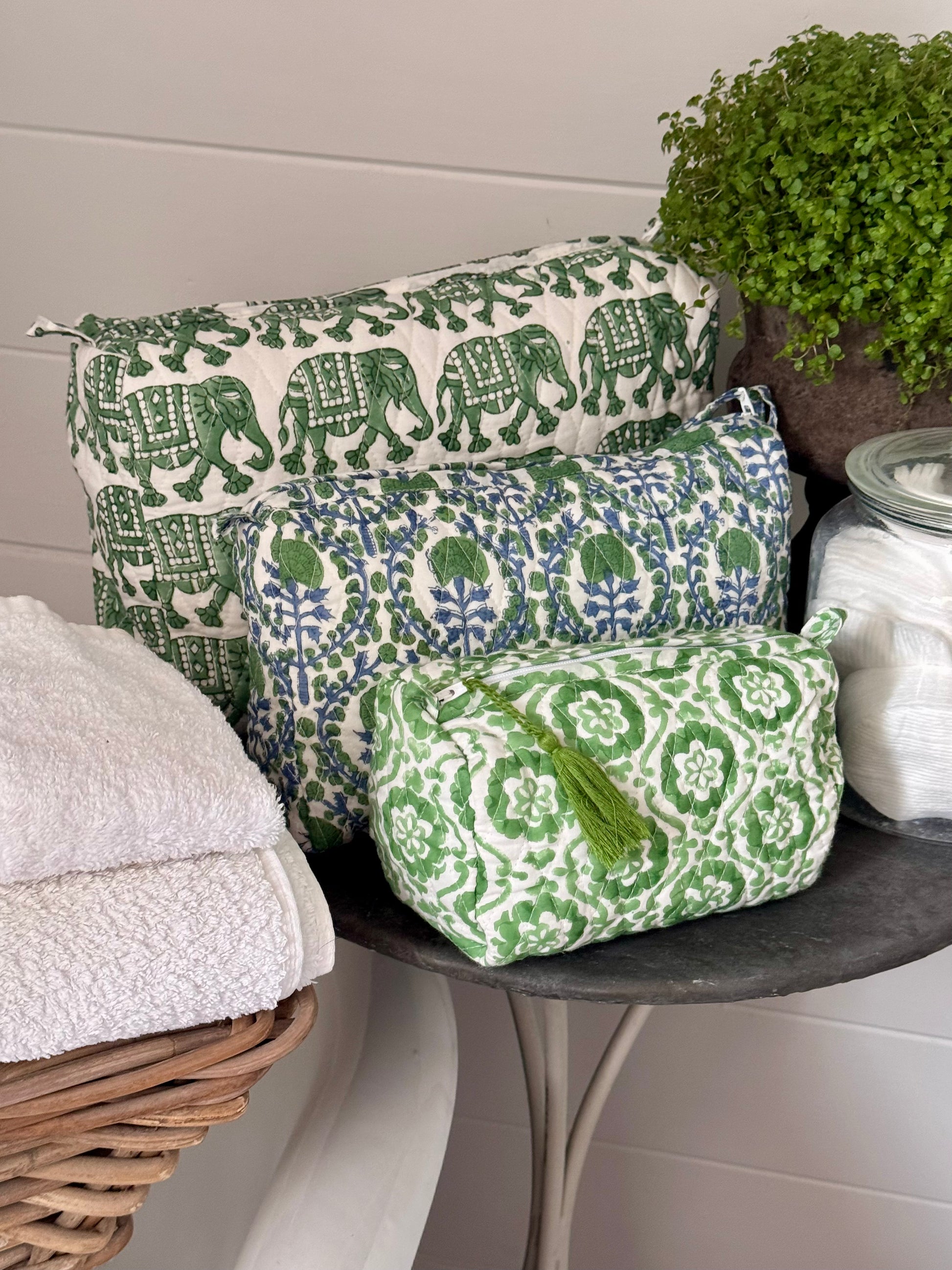 Pairs brilliantly with the Green Elephant Makeup Bag or the Blue and Green Trellis Makeup Bag