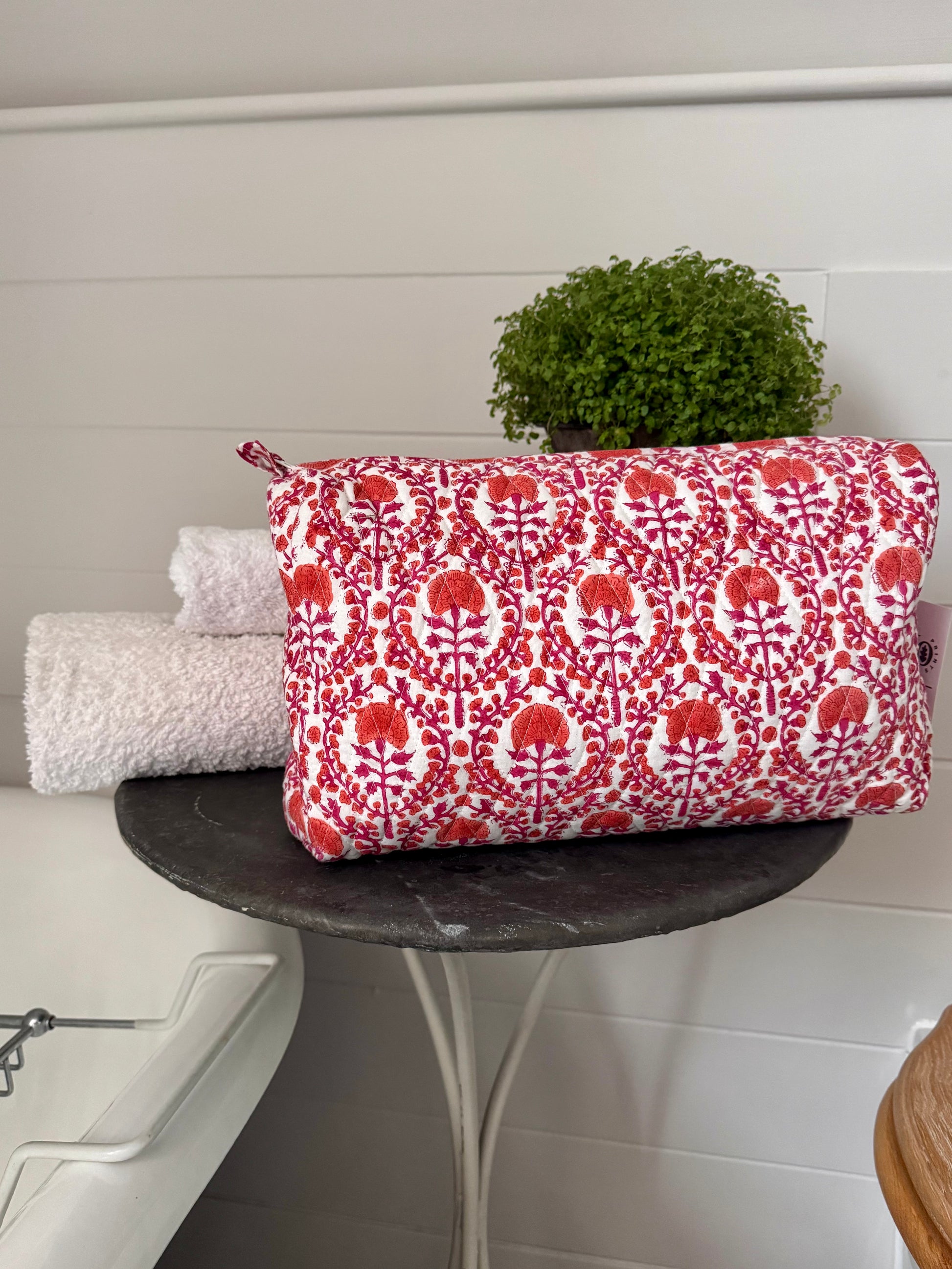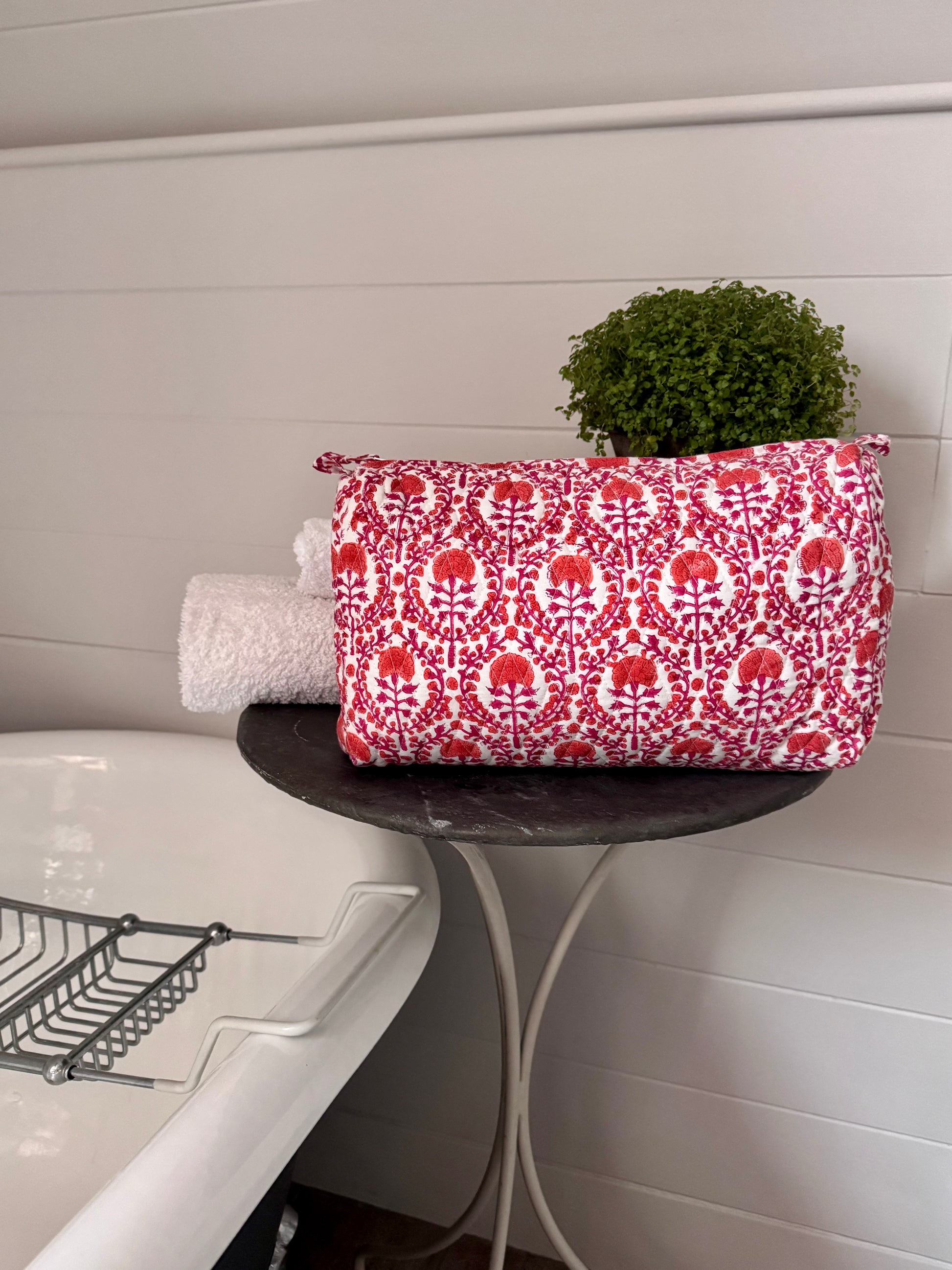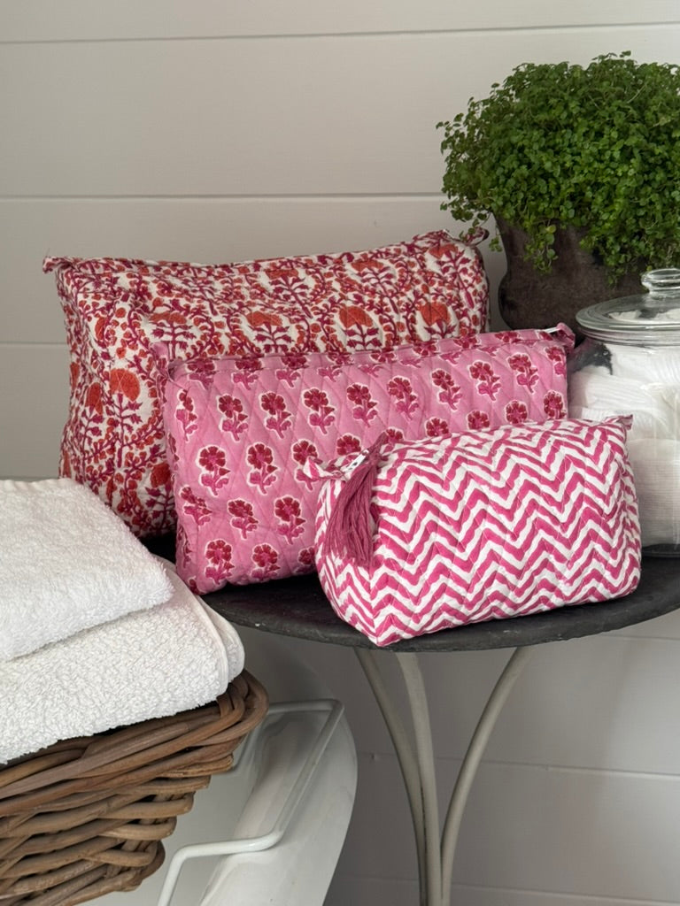 Pairs perfectly with the Pink and Orange Trellis Makeup Bag