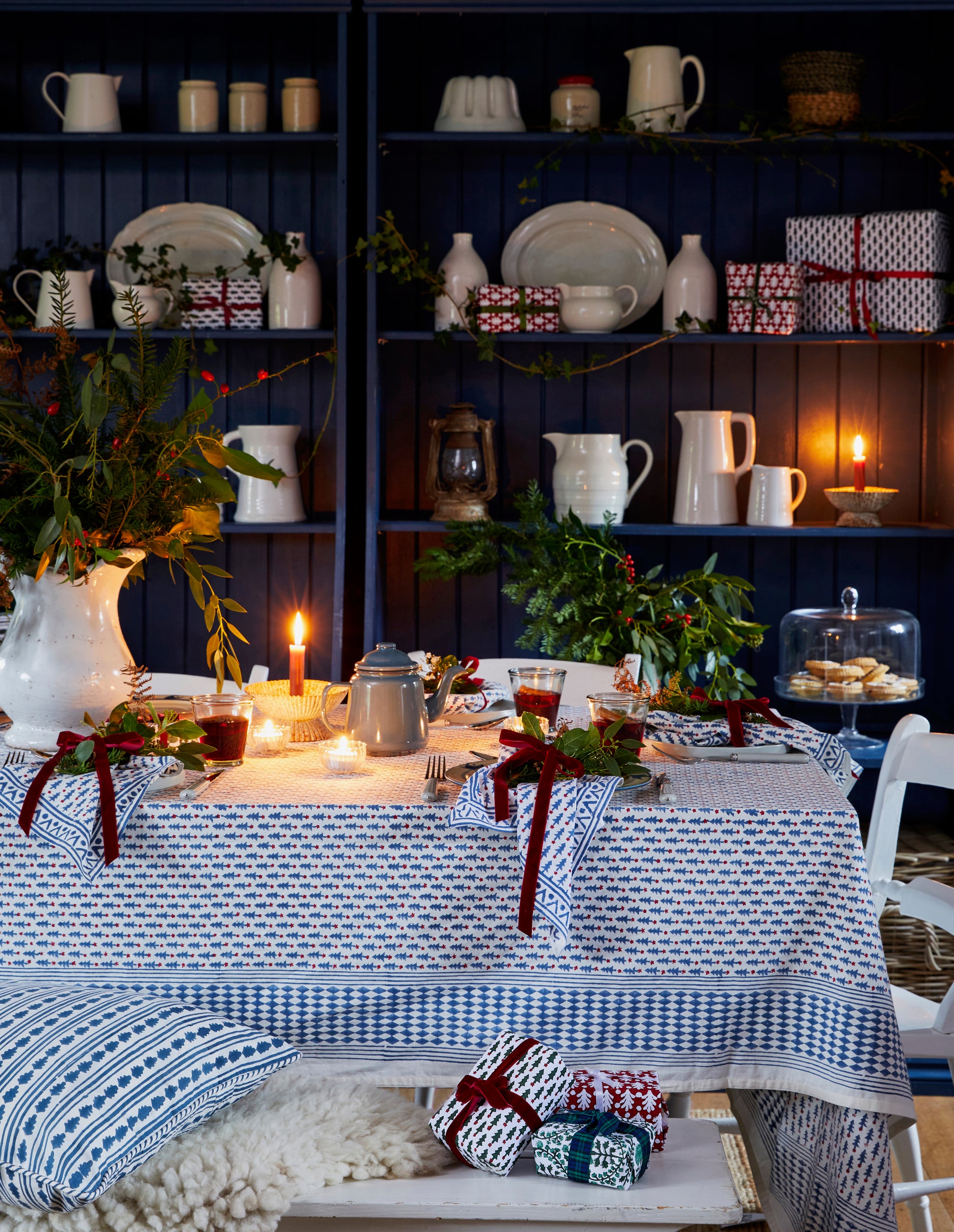 SCANDINAVIAN BLUE CHRISTMAS TREE TABLECLOTH