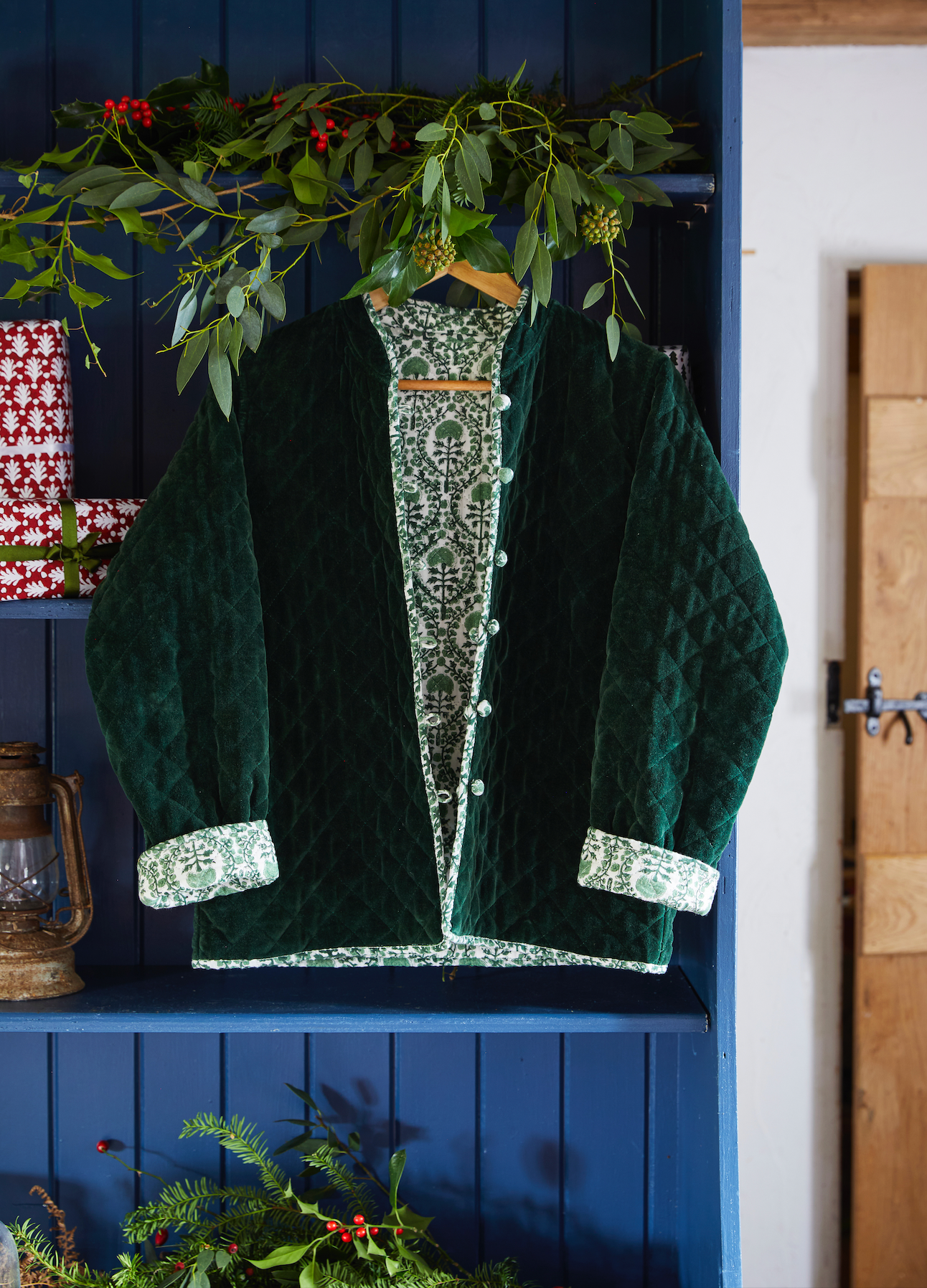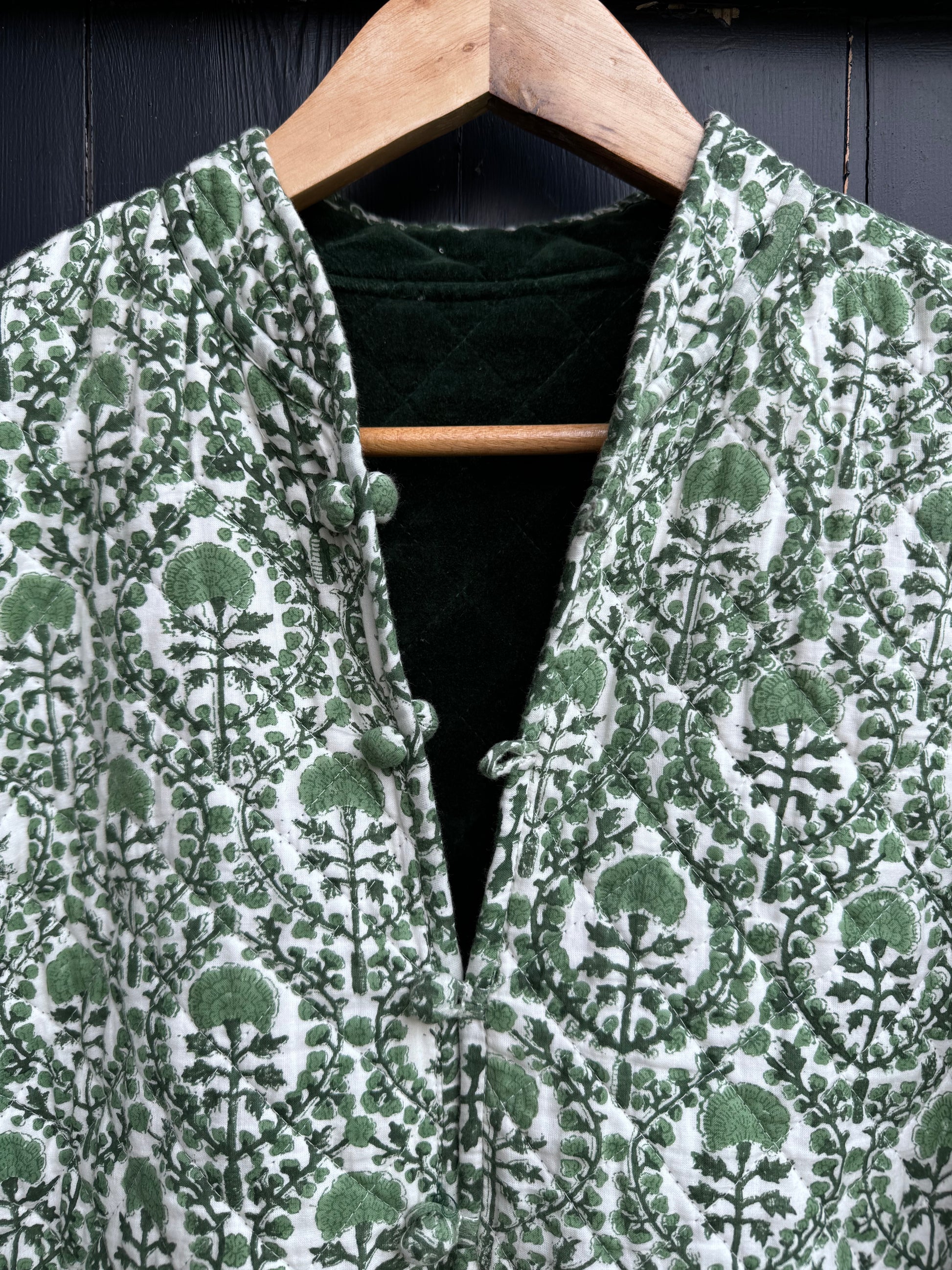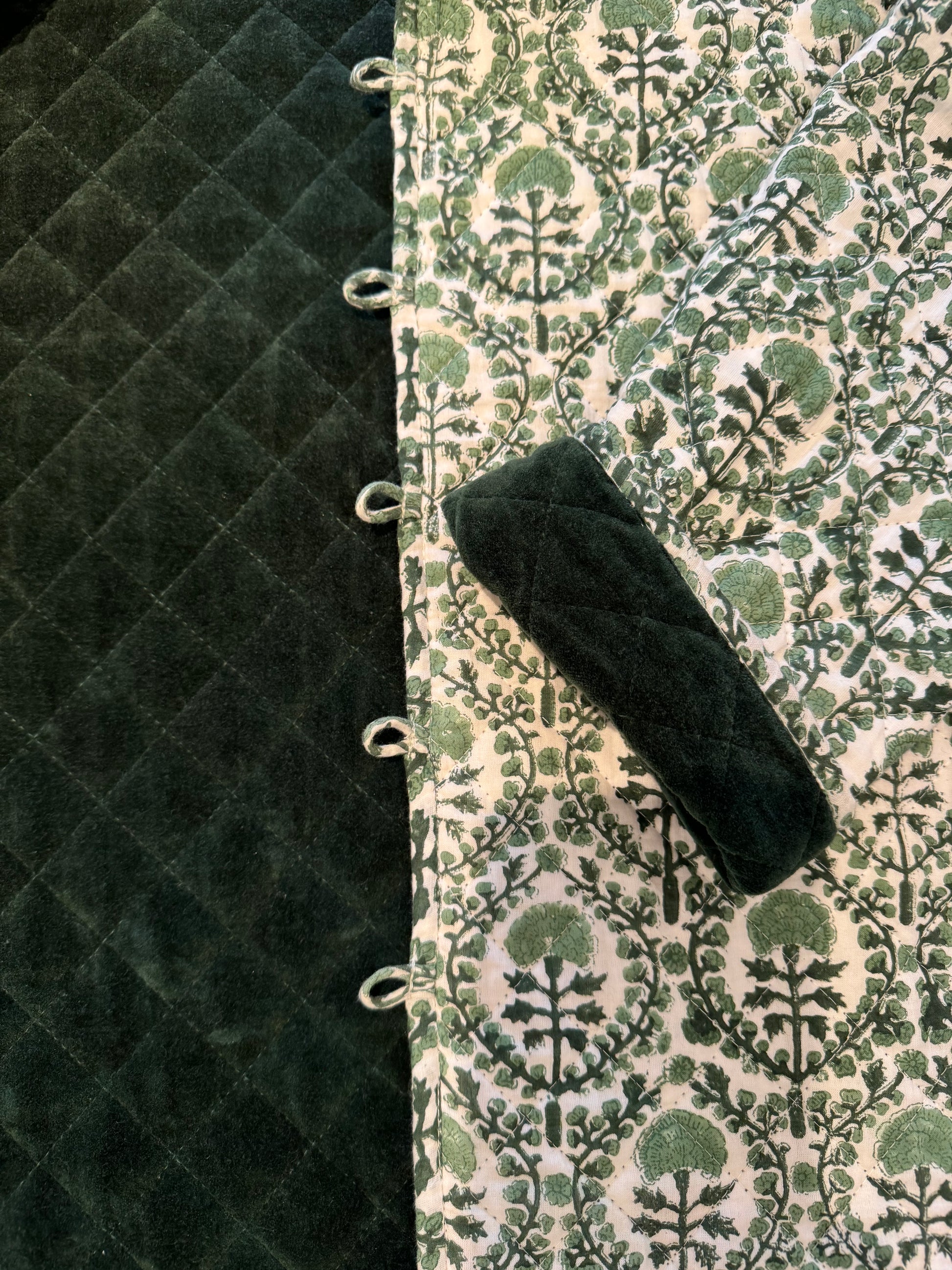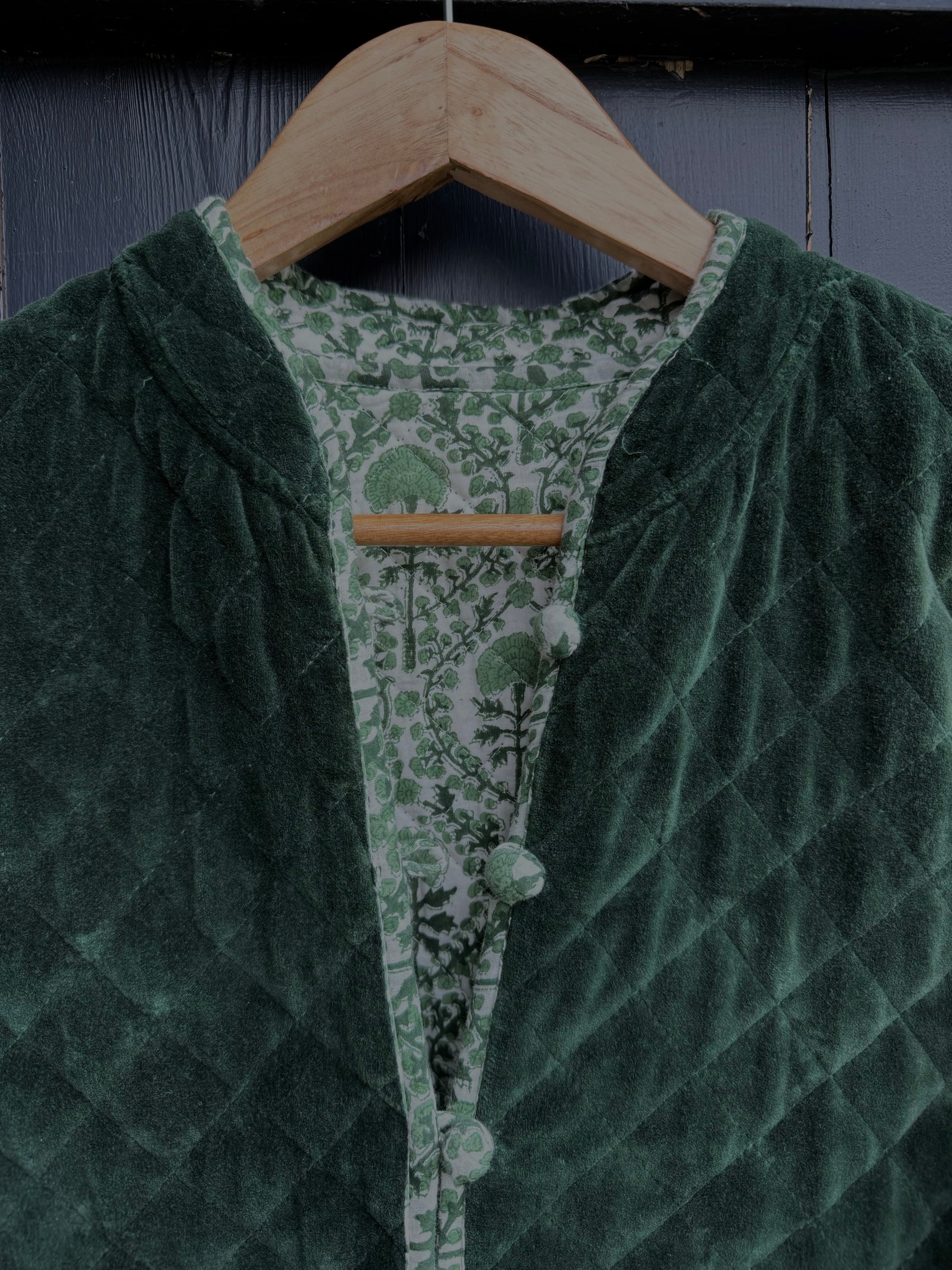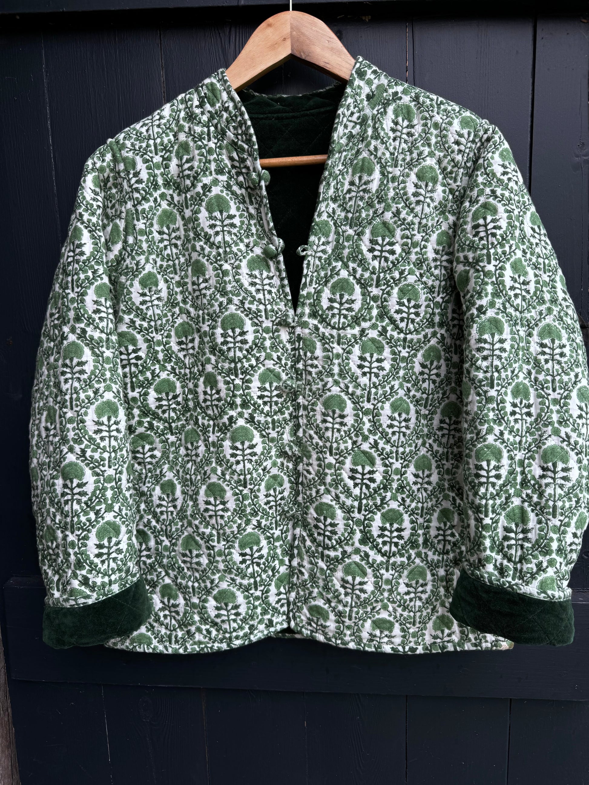 The same cut and style as our much loved cotton quilted jackets but for this season combine a classic KaHo print with a contrasting elegant and luscious velvet!