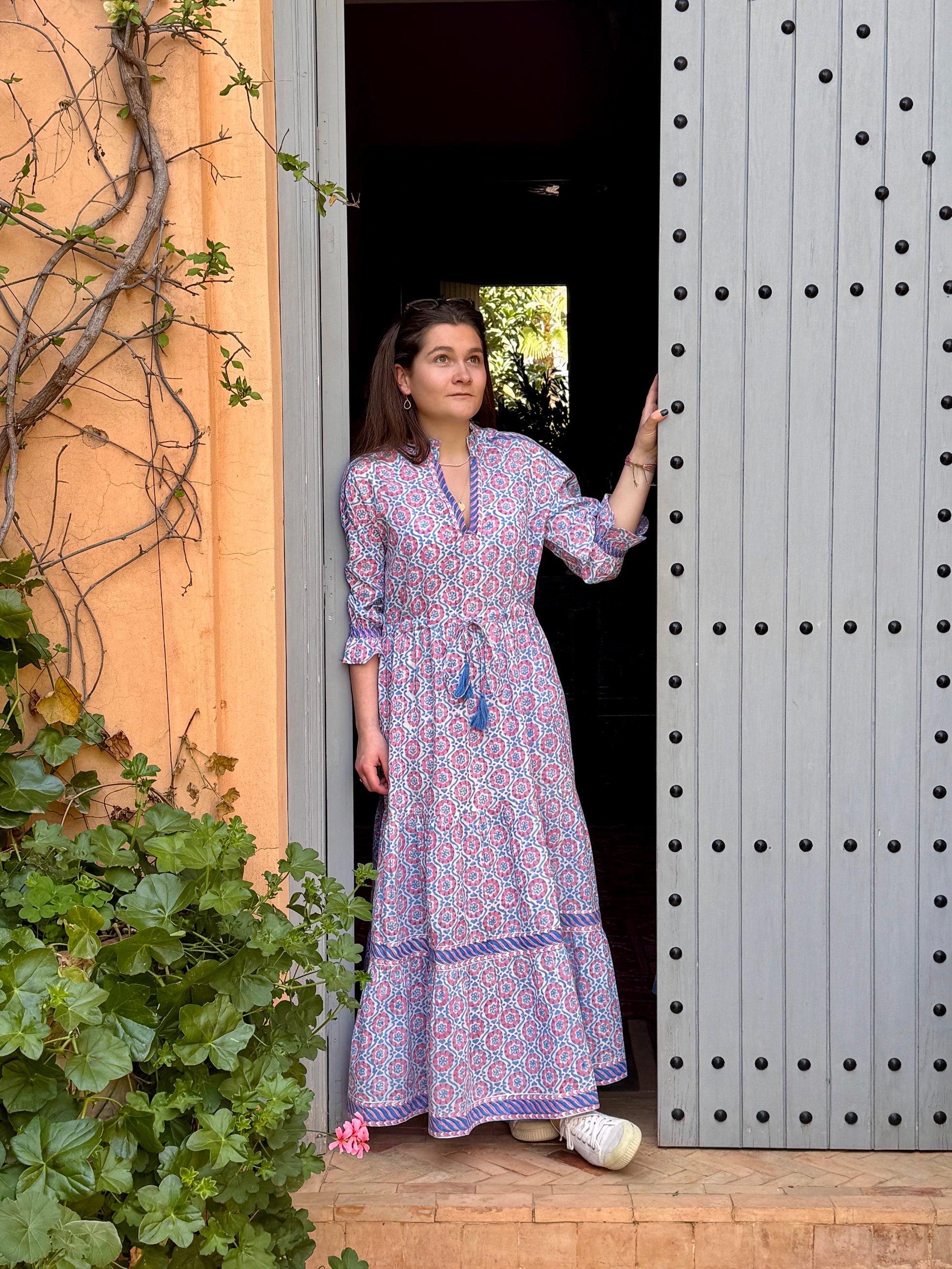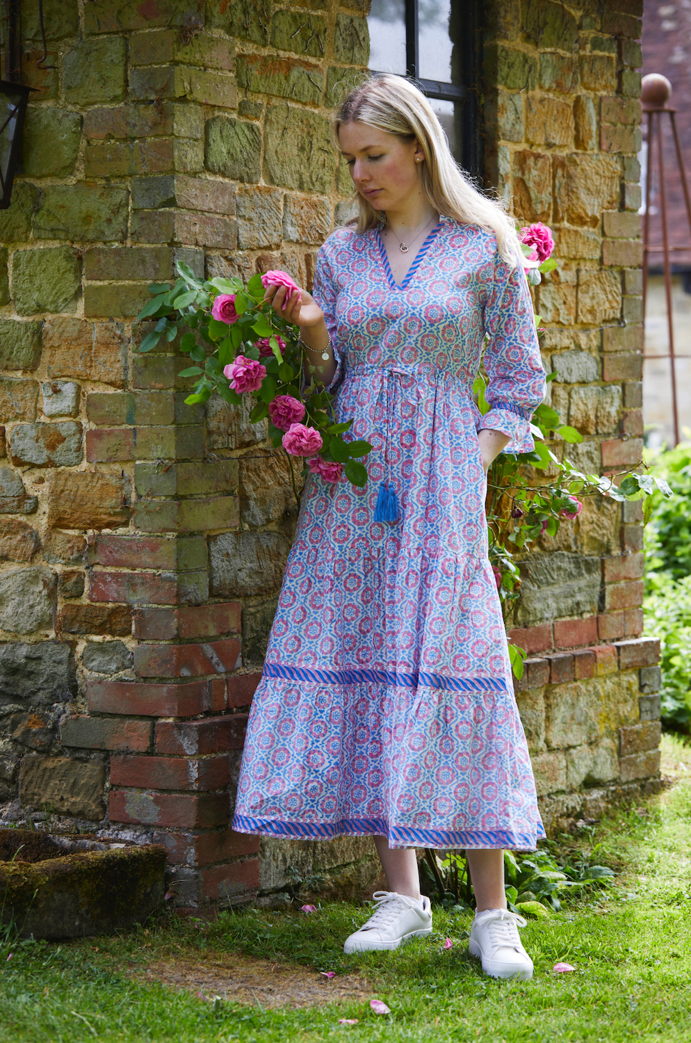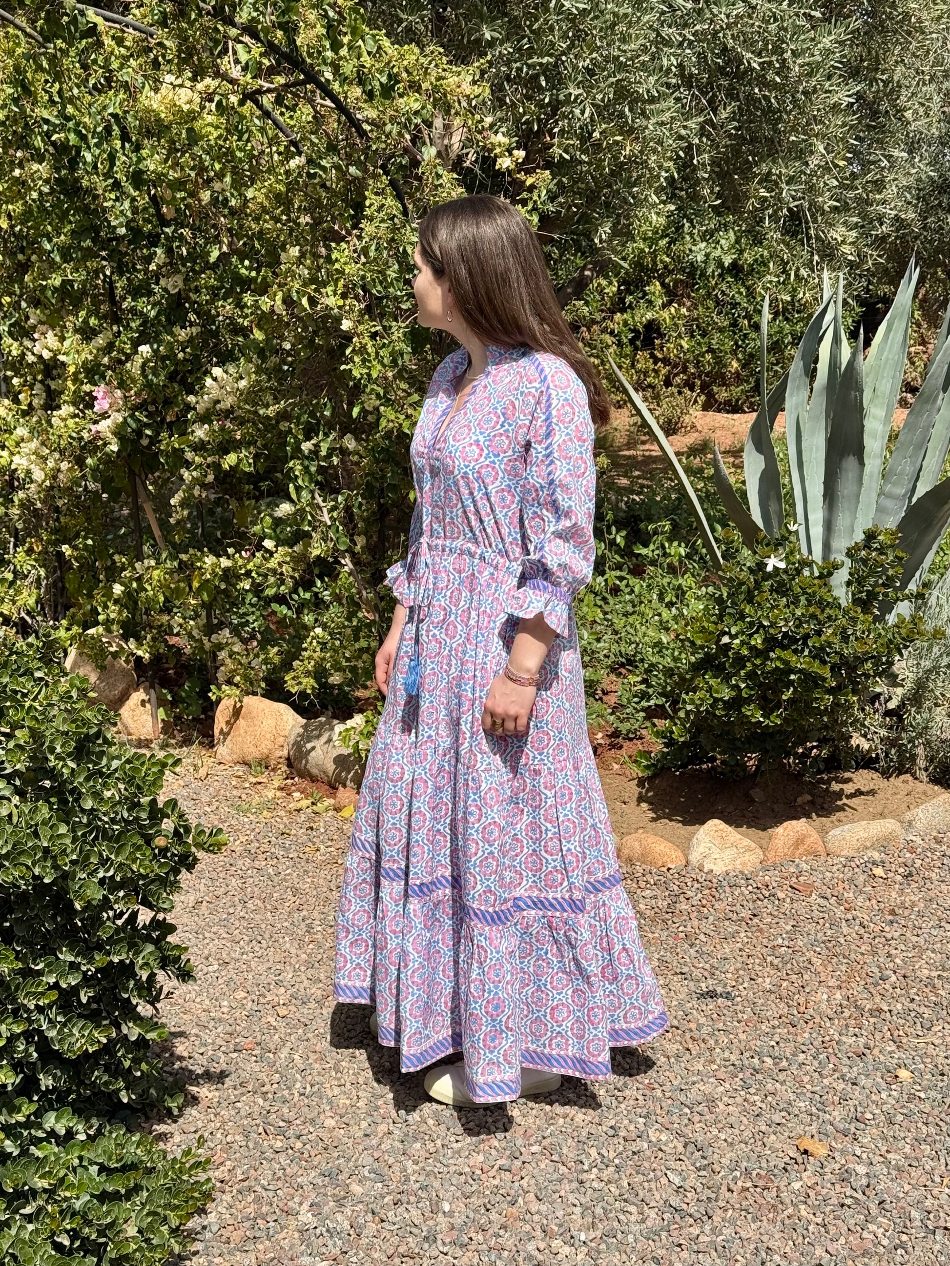 PINK AND BLUE SPIRAL FLORAL LOTTIE DRESS