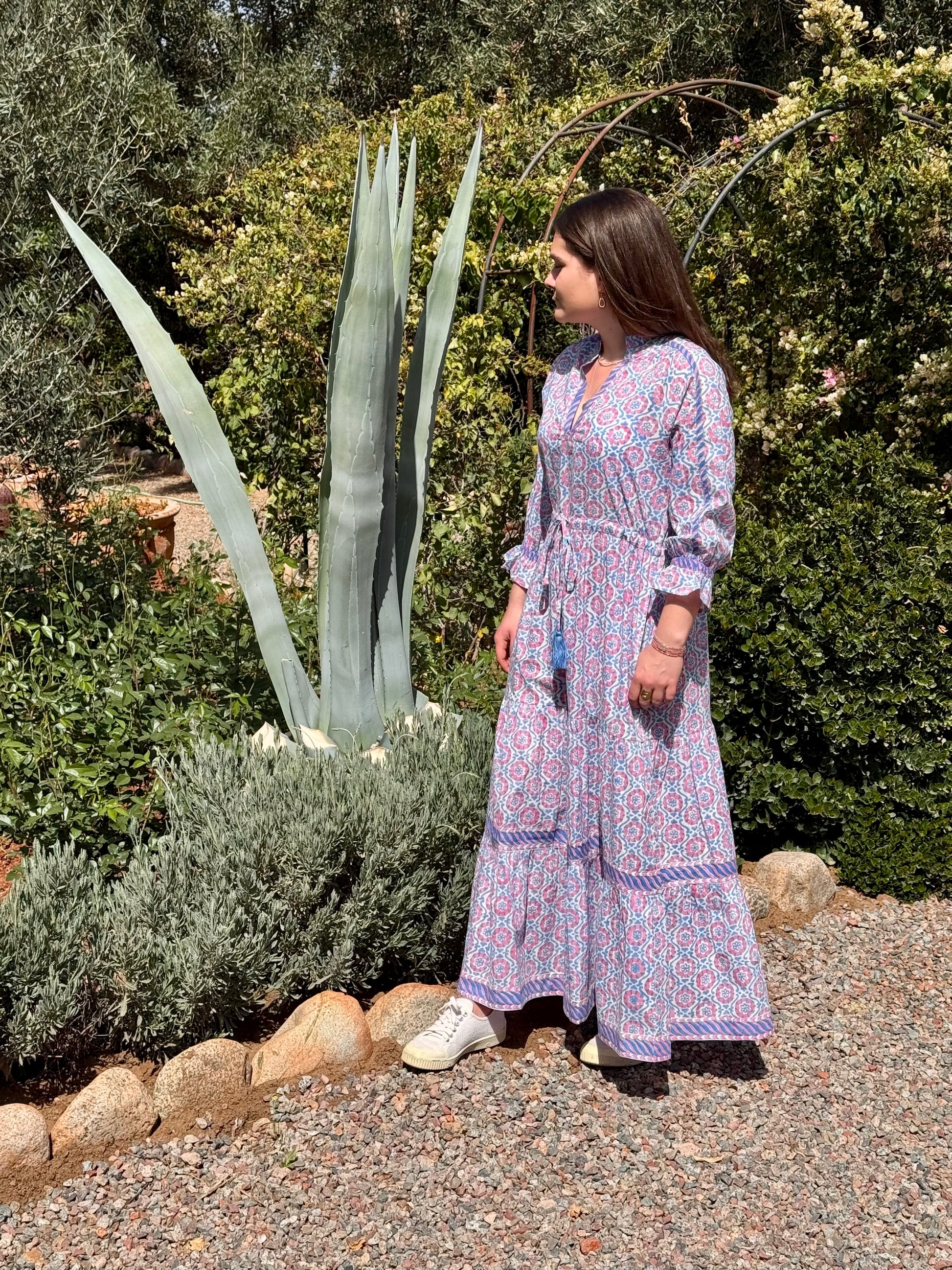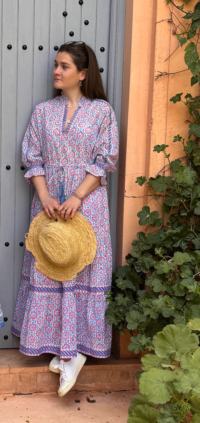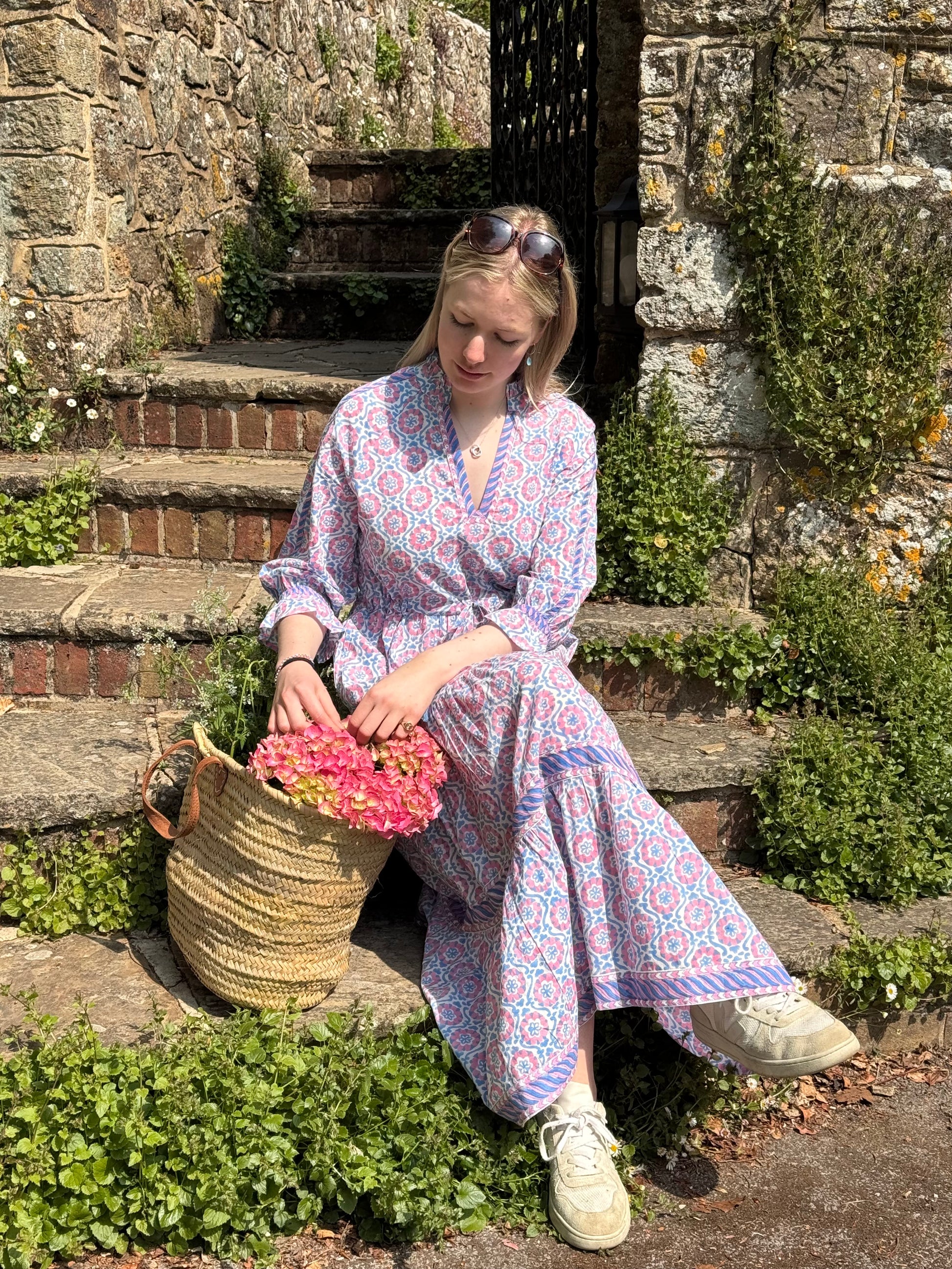 PINK AND BLUE SPIRAL FLORAL LOTTIE DRESS